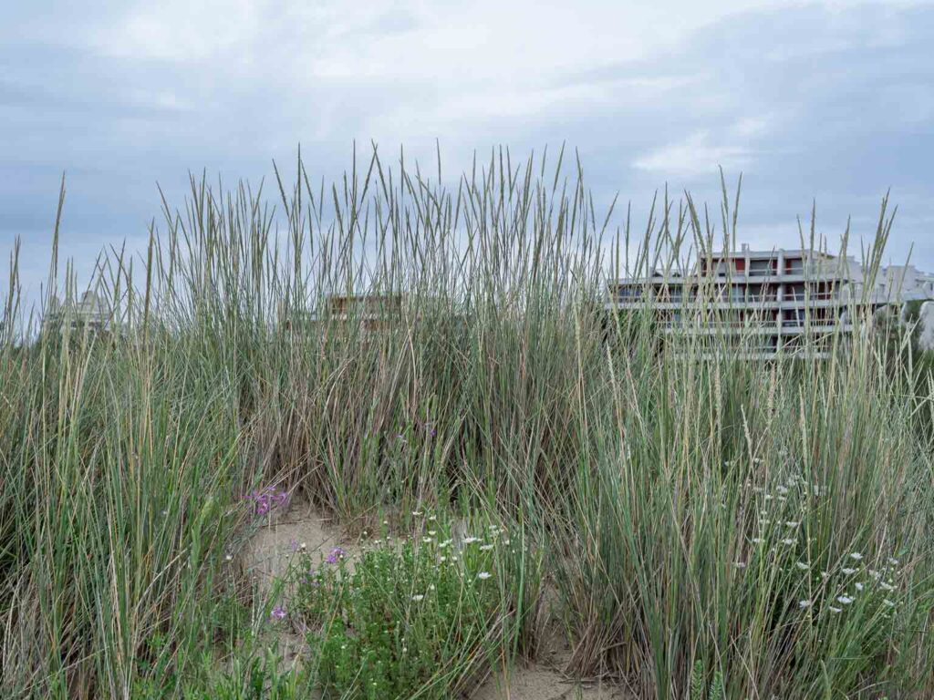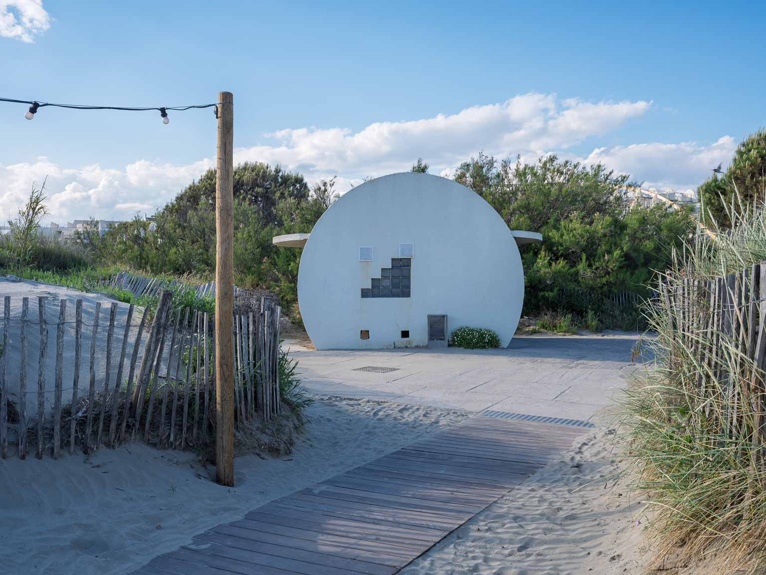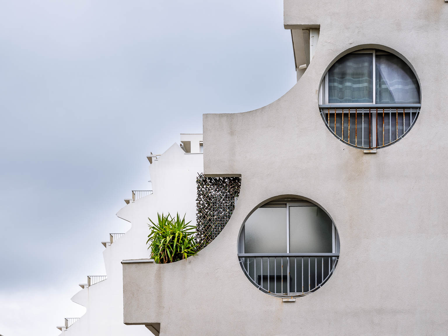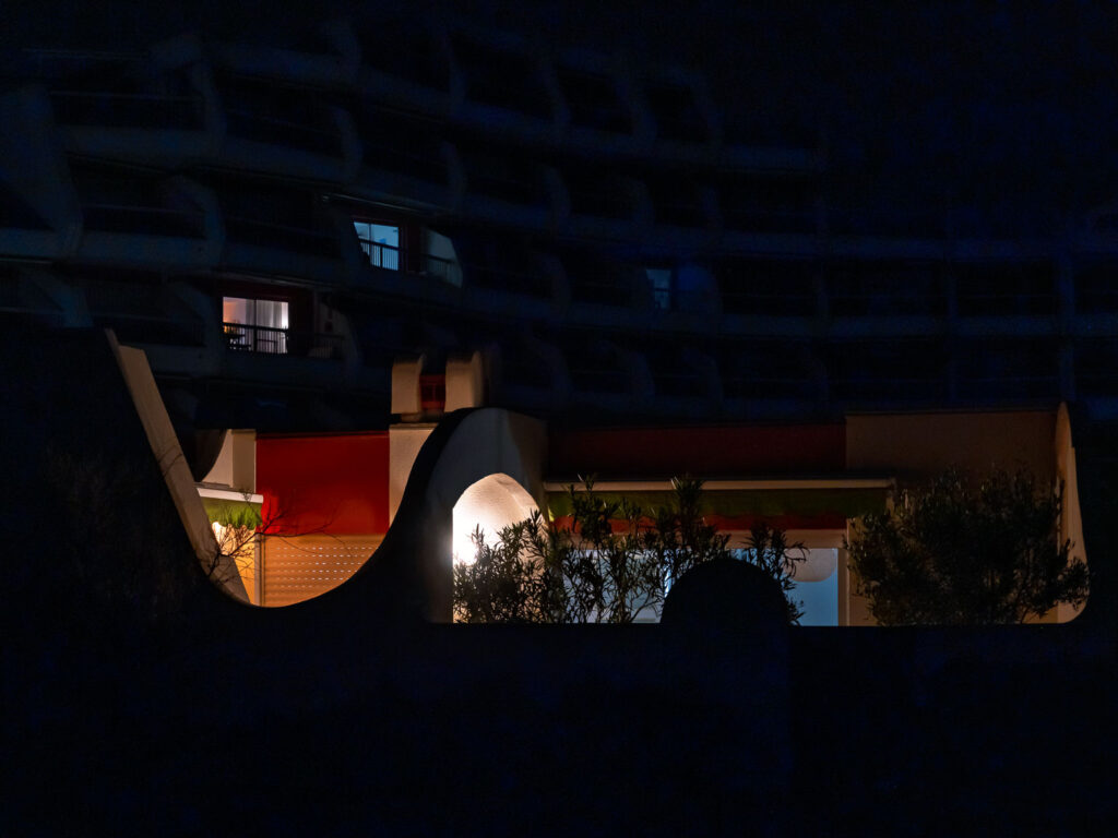 La Grande Motte en Hérault est une ville sortie de terre en 1963 sur la vision de l’architecte Jean Balladur dans le cadre de la mission Racine insufflée par Charles de Gaulle afin d’attirer le tourisme sur la côte languedocienne. Objectif atteint, la ville est surpeuplée en été. Mais, au printemps la ville est beaucoup plus calme et, se promener entre mer et terre, entre architecture avant-gardiste et végétation artificielle mais parfaitement harmonieuse, est un plaisir pour le regard photographique.