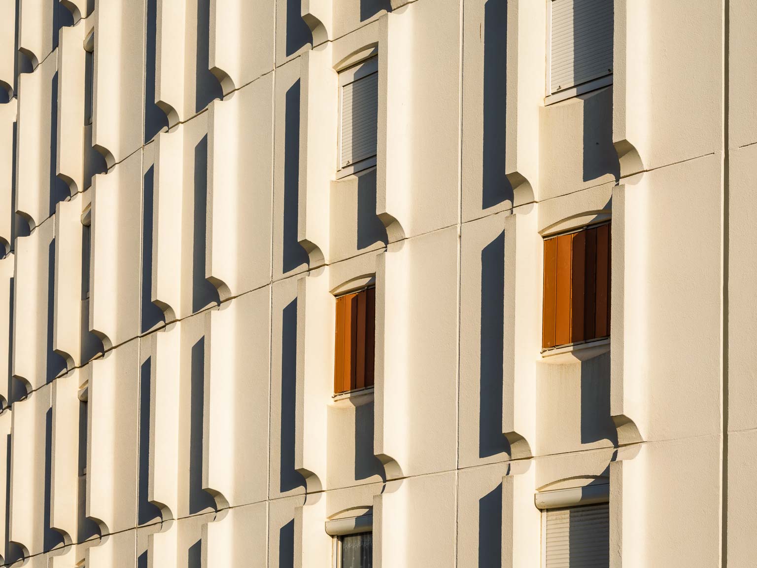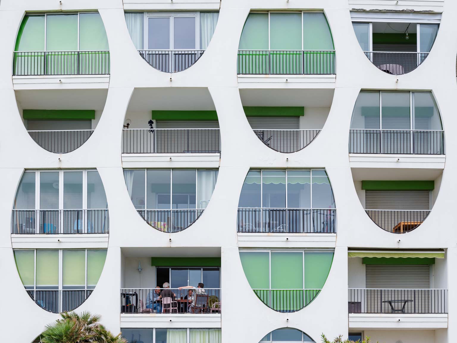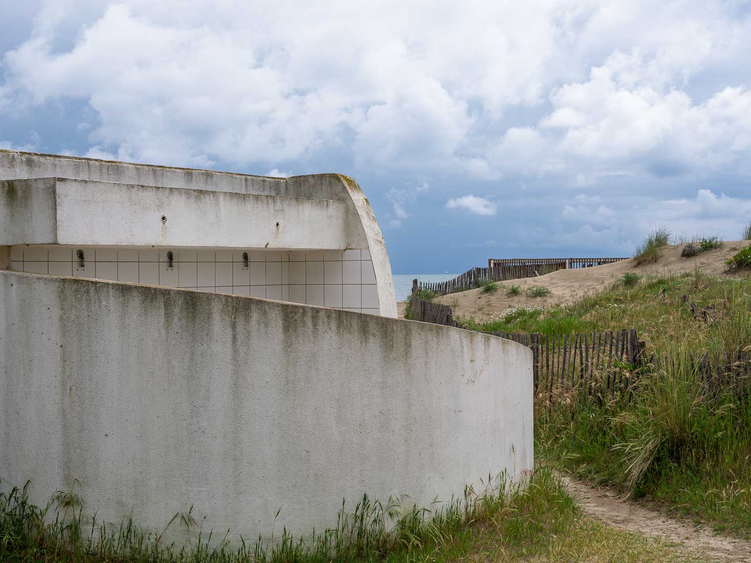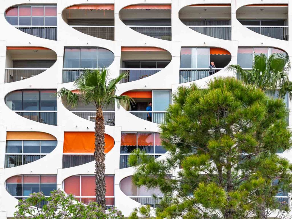 La Grande Motte en Hérault est une ville sortie de terre en 1963 sur la vision de l’architecte Jean Balladur dans le cadre de la mission Racine insufflée par Charles de Gaulle afin d’attirer le tourisme sur la côte languedocienne. Objectif atteint, la ville est surpeuplée en été. Mais, au printemps la ville est beaucoup plus calme et, se promener entre mer et terre, entre architecture avant-gardiste et végétation artificielle mais parfaitement harmonieuse, est un plaisir pour le regard photographique.